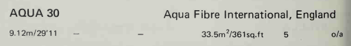 S&S design #2014. See AQUA 30 for more details. Also sold as the AQUA 30. Imported to US and sold as the PALMER JOHNSON 30. (actually there were 2 versions of the PJ 30, both different vintage S&S 30's.)