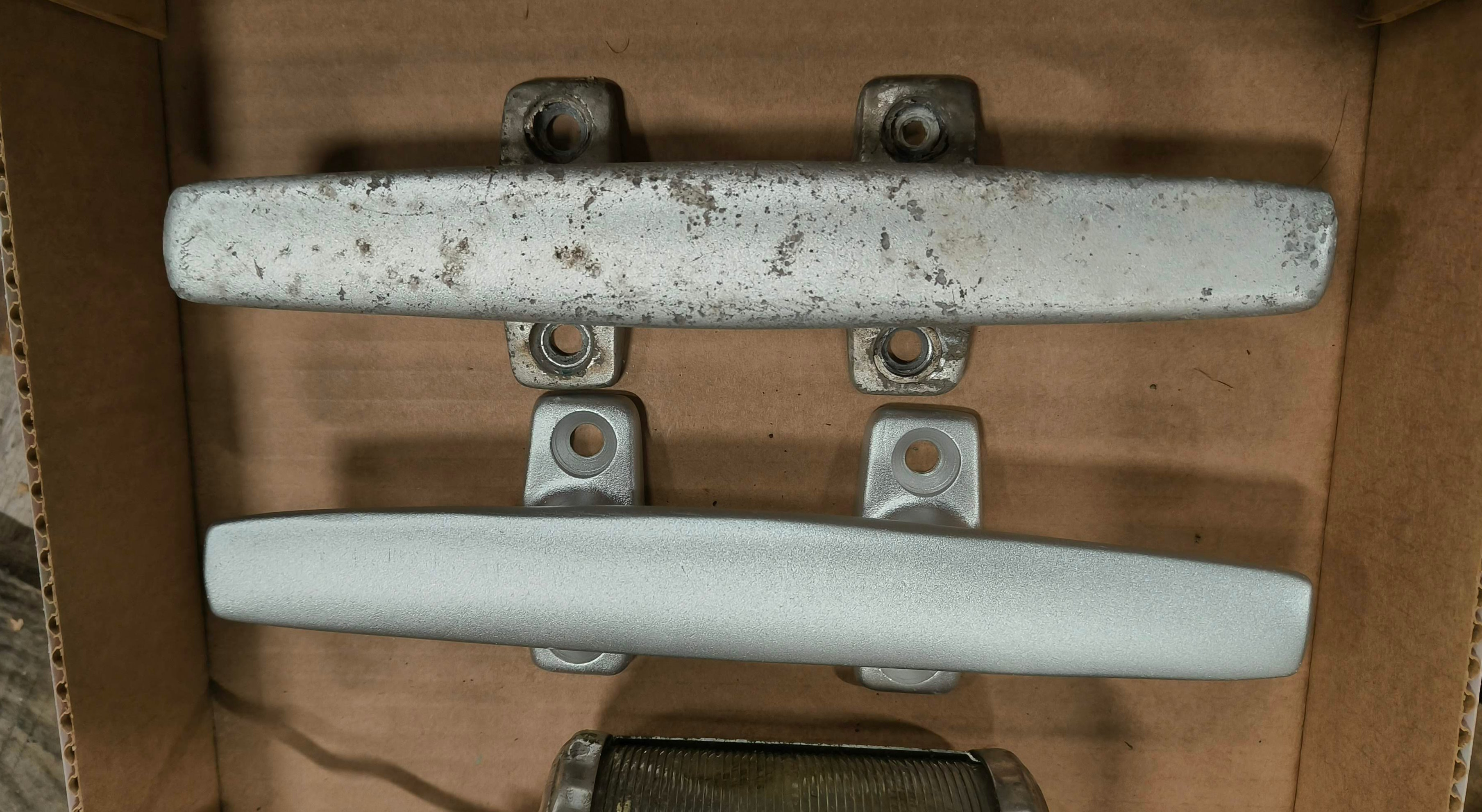 Toinen takaknaapi oli asennettu tämän telineen päälle ja tästä oli seurannut aikojen saatossa alumiinisen knaapin syöpyminen. Onneksi Jukovan F-39 knaapia saa edelleen uutena.