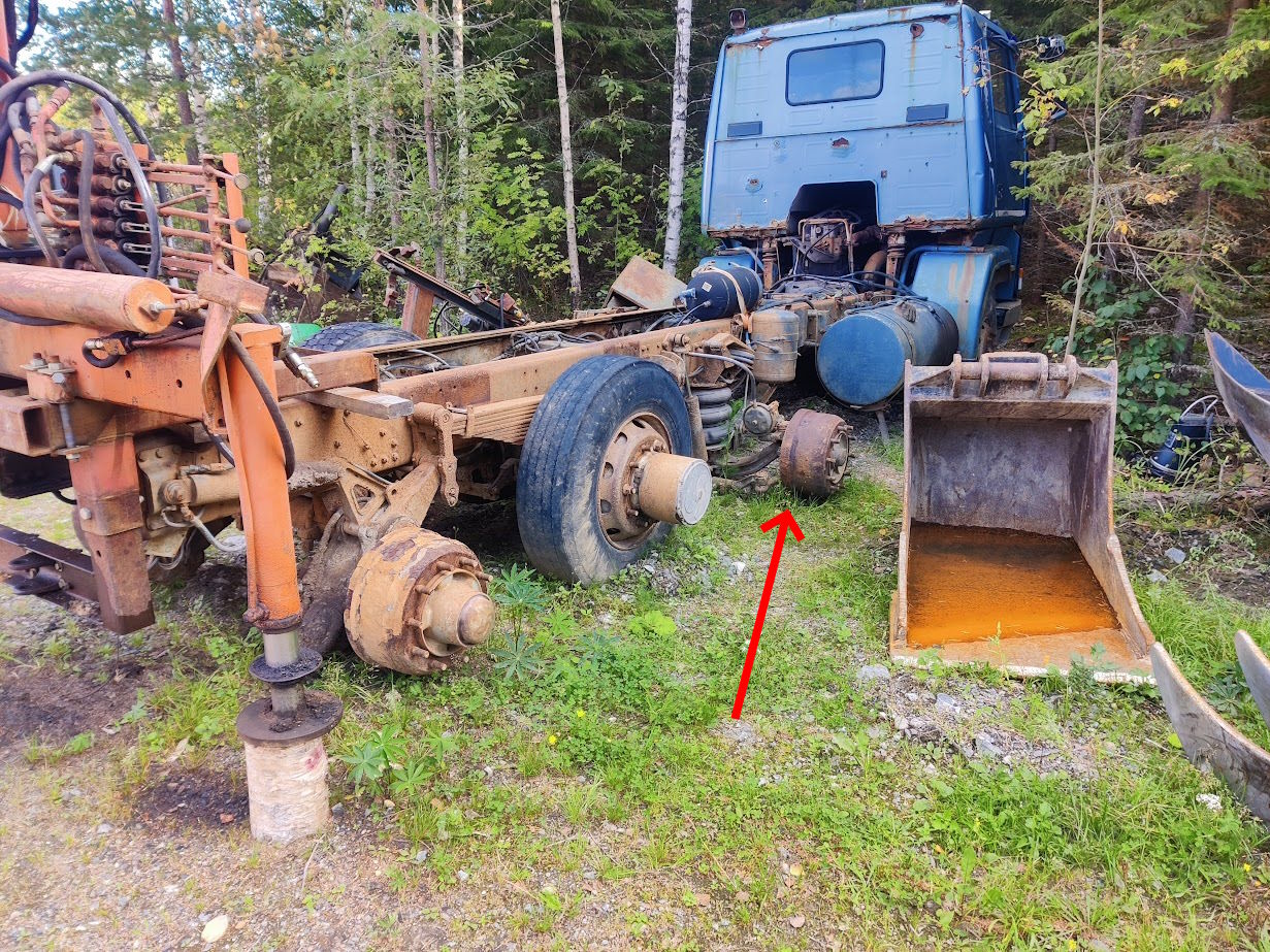 Sopiva akseli löytyi kaverin vanhasta lavetti-Sisusta. Valinta kohdistui tuohon etummaiseen trippeliakseliin.