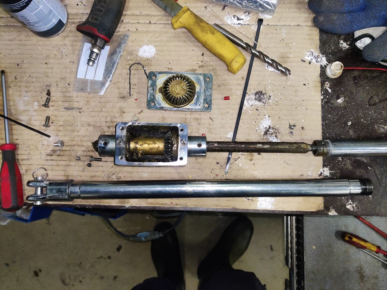 Purkamisessa ei ollut oikeastaan muuta ihmeellistä kuin että noiden pidätinruuvien kanssa sai olla tarkkana. Tarpeeksi irroitusöljyä ja malttia jos kierre tuntui takkuavan.
